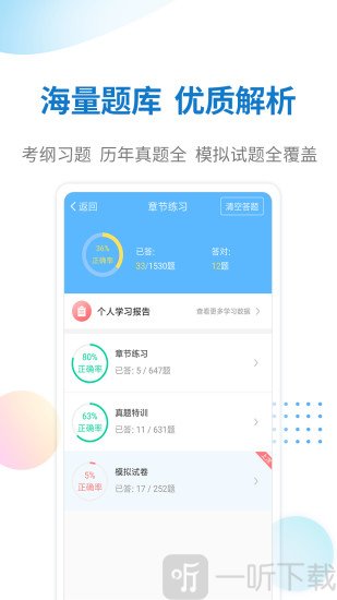 1. 海量试题资源:涵盖章节练习、历年真题、模拟考卷等,助力用户实现全方位、分类型的学习强化。