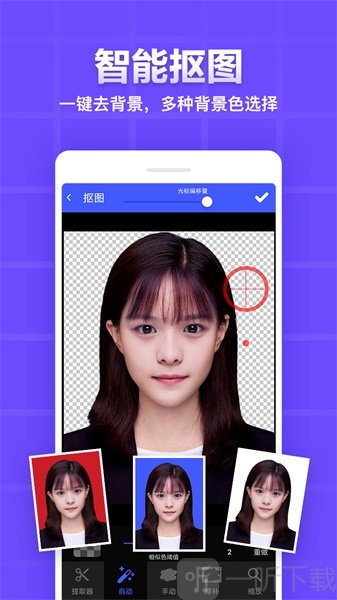 快速添加男女正装,一键完成美容,轻松摆脱难看的身份证照片。您还能快速调整背景颜色,一键操作,便捷又简单。
