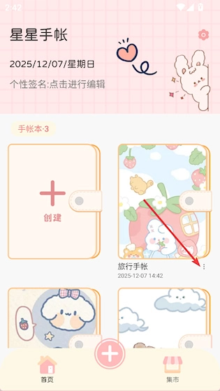 1、点击手帐本右下角的三点按钮