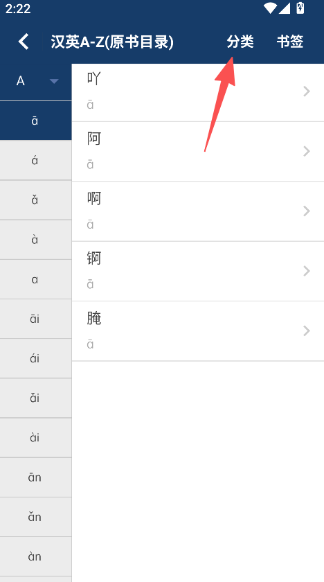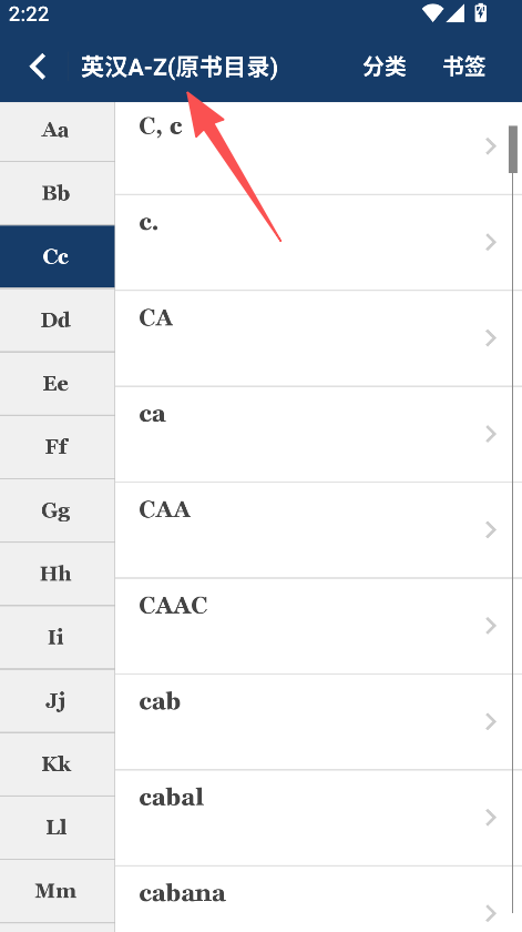 1启动应用程序后,进入支持双向字母顺序检索的词典功能模块,即可进行词汇查询操作。