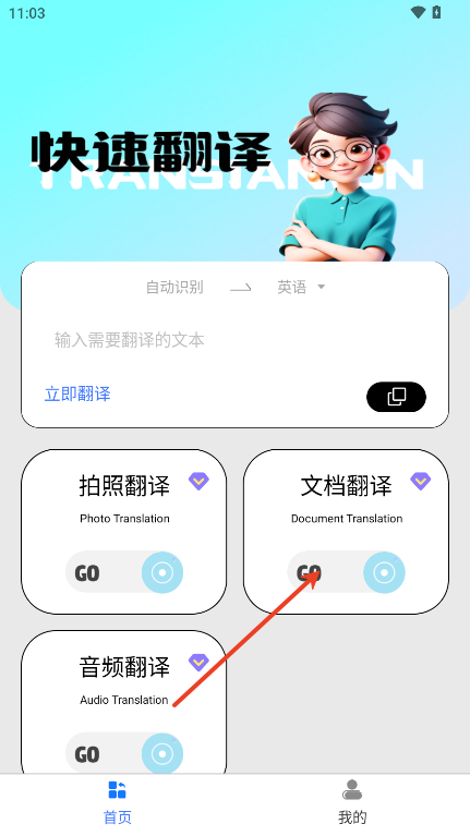 3、在搜索框中输入要翻译的内容点击立即翻译