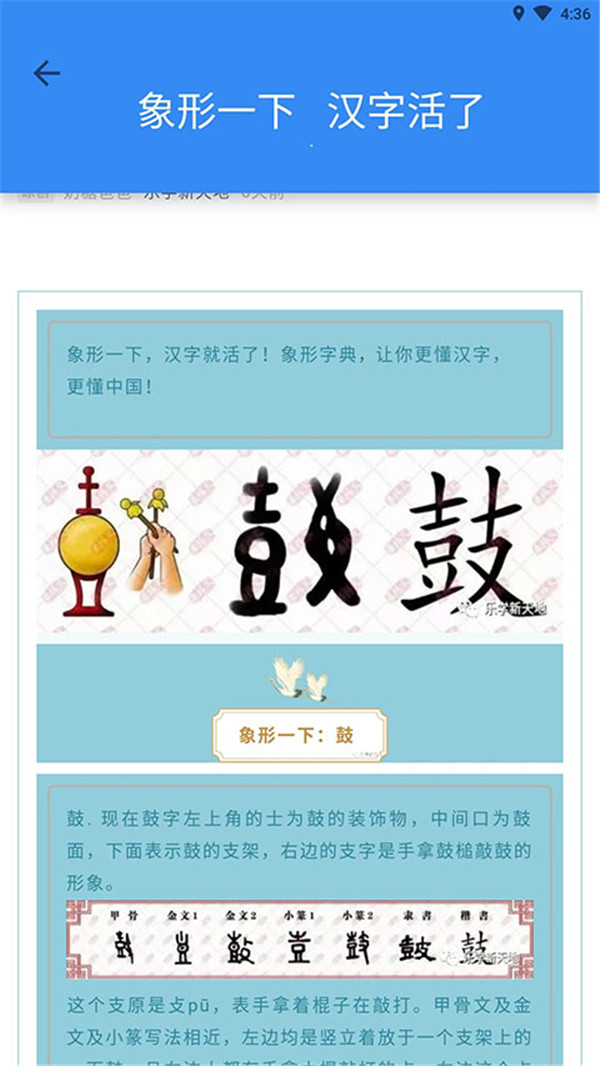 5、持续更新的汉字学习资源:为确保学习者接触到的汉字知识始终处于前沿且覆盖全面,新版象形字典会动态迭代学习内容,并借助用户的互动反馈机制,持续优化内容质量与学习成效。