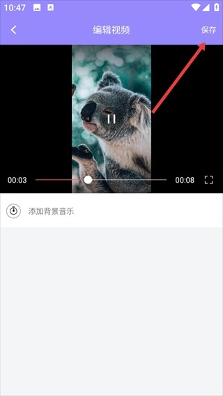 4、在编辑视频页面,点击右上角【保存】按钮,完成图片转视频的制作。