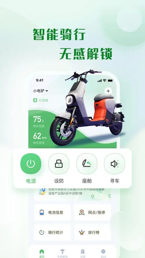4骑行者绑定车辆后,可借助手机蓝牙功能实现无钥匙开锁、操控车锁、启动电源及查找车辆,无需携带传统车钥匙,让出行更便捷。