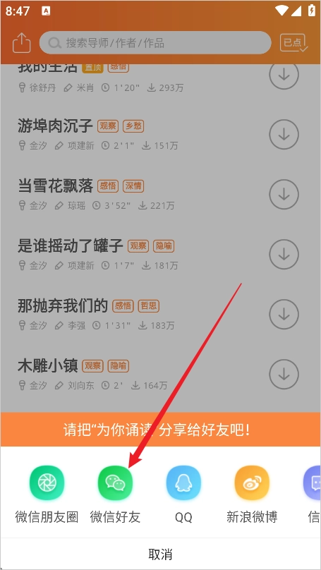 1、在为你诵读中找到你需要分享的诵读