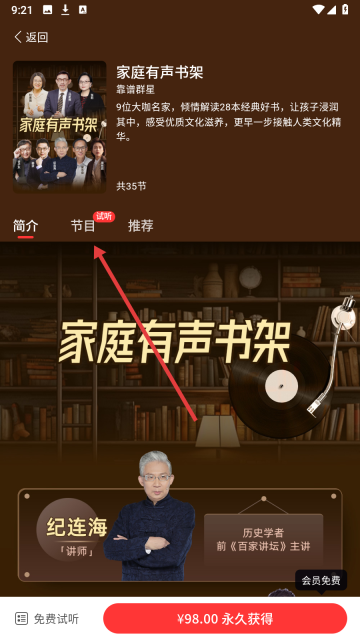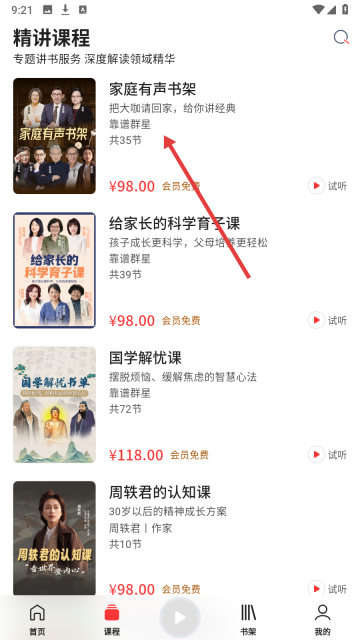 2、点击【家庭有声书架】,进入课程详情页查看内容亮点。