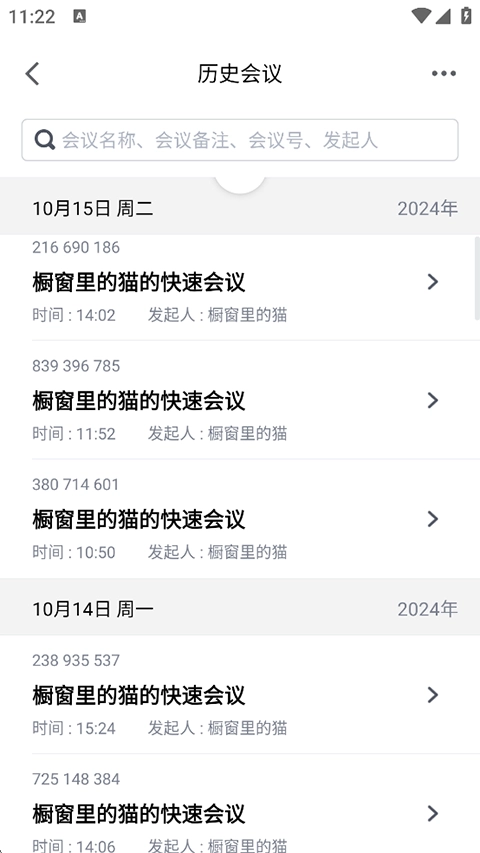 2、在历史会议界面,选择要查看回放的会议。