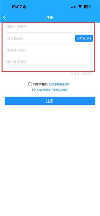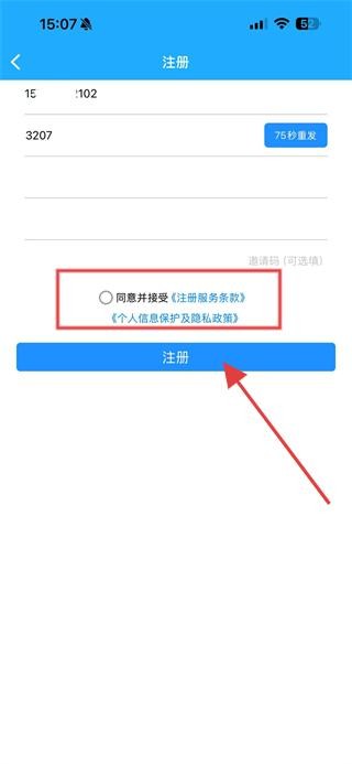 3、勾选同意并接受注册服务条款、个人信息保护及隐私政策,点击注册按钮,即可完成账号注册。