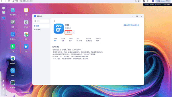 1用户要先在飞牛nas设备搭载的飞牛私有云fnos系统里完成影视服务器的部署搭建,具体的操作步骤可通过帮助文档页面进行查询。