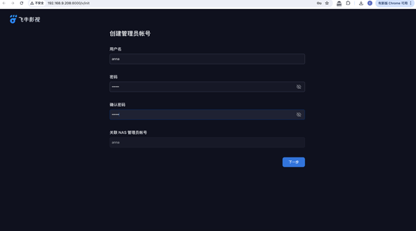 点击“开始使用”按钮,即可进入NAS授权登录界面,届时请以NAS管理员身份完成授权登录操作。这一步骤的目的在于保障仅NAS管理员能够担任影视管理员一职,并对影视应用进行管理。