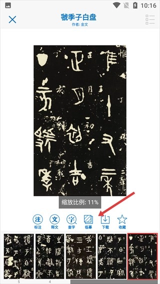 3、在【虢季子白盘】详情页,点击【临摹】按钮。