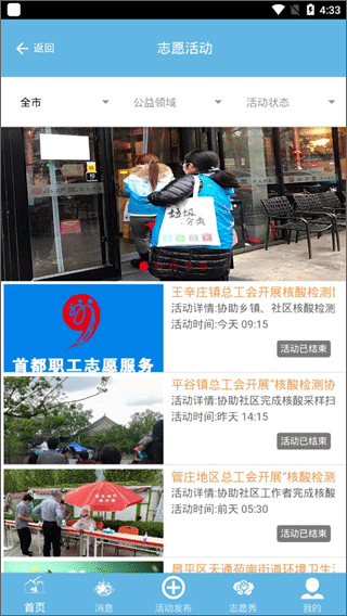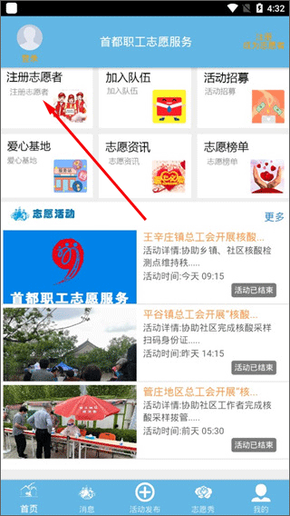 4、完成注册后,在志愿活动板块里就能看到当日的各类活动,大家可以踊跃报名参与。
