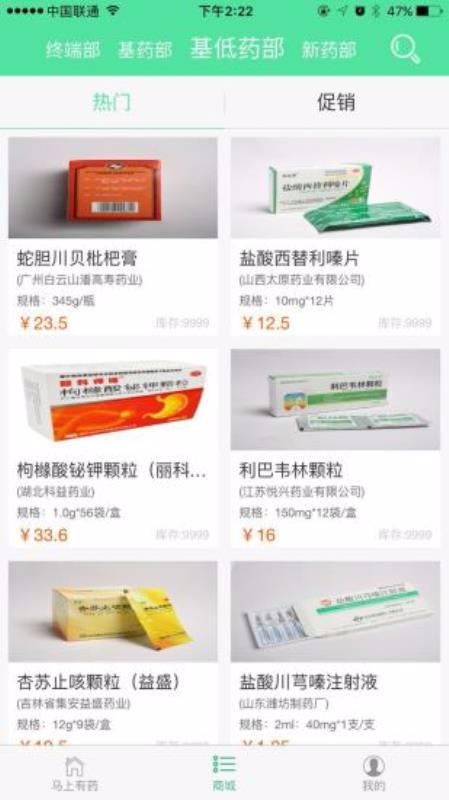 4进入“马上有药”应用后,可通过点击终端部、基药部、新药部等不同板块来开展查找操作。