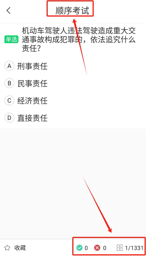 2、若希望按部就班地学习,可点击“顺序练题”,系统将按照既定顺序引导你完成整个题库的练习。