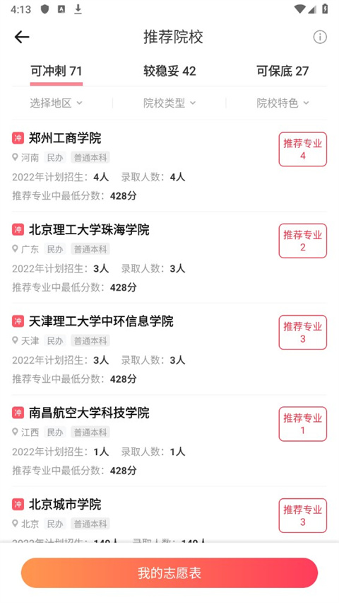 2在系统推荐院校的前提下,考生能够依据个人偏好的城市区位、院校类别、目标专业等要素,更有针对性地定制出契合自身需求的个性化志愿方案。