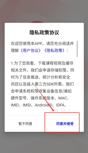 1勾选同意协议后进入应用,即可开启对海量学习资料与互动式课程的探索之旅。