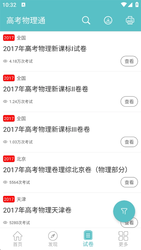 1、打开高考物理通,点击试卷,选择需要打印的试卷题目进入;