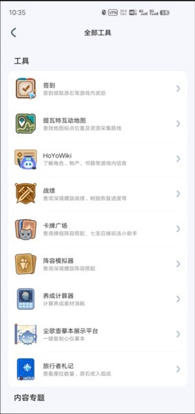 5、此外,软件内还配备了不少实用的游戏工具,像签到功能、提瓦特互动地图以及养成计算器等。