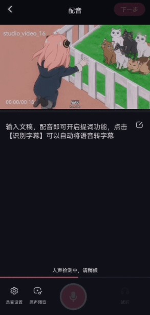3、然后按钮下方按钮,开始录音,等待系统识别后,点击下一步保存即可。