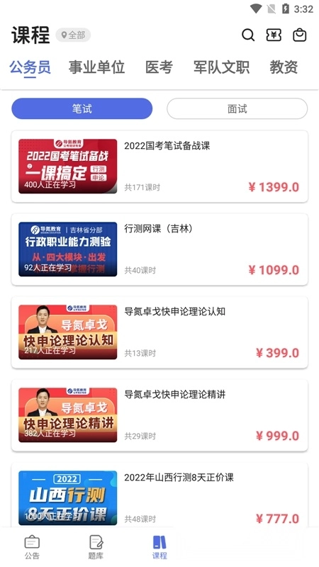 导氮公考手机版是导氮教育专门为学员打造的公考刷题平台,能为大家提供公考申论、行测、面试的一站式备考辅导。这里有高质量的精品公考视频课供你学习,还有海量公考模拟题和真题等你来刷,欢迎免费使用!