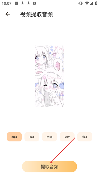4在进行音频提取的功能界面中,确定好想要的音频格式选项后,点击对应的提取功能按钮,即可完成从视频中分离出音频的操作。