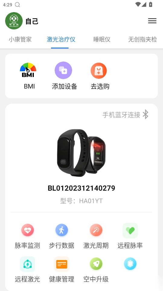 4. 进入激光治疗仪页面后,点击“添加设备”按钮以进入下一步操作
