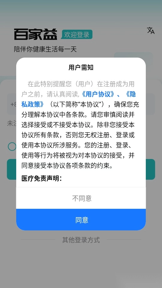 1.打开软件阅读“用户需知”内容点击“同意”进入