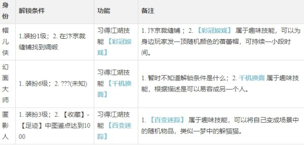 隐藏身份包含【帽儿侠】、【幻面大师】以及【匿影人】这三种。