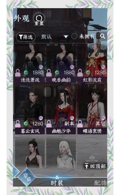 一套时装可通过战令获取,名为素尘凌霜,其衣品值为300;其余时装的获取途径则包括剧情、身份、门派、副本等。