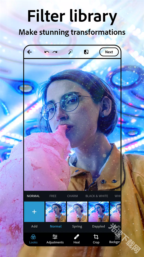 Photoshop最新版是一款功能强大、界面清爽的图片编辑软件。借助这款软件,用户能够在手机上随时随地处理个人照片素材,无论是修图、调色还是裁剪,都能在软件中轻松完成,体验堪比专业级的修图功能服务。该软件为用户提供了海量美观实用的滤镜、边框、拼接模板、特效等资源,助力用户打造更具趣味性的图片效果。此外,软件还配备了智能AI功能,可自然地修复图片、还原其原本效果。