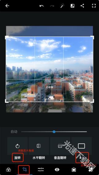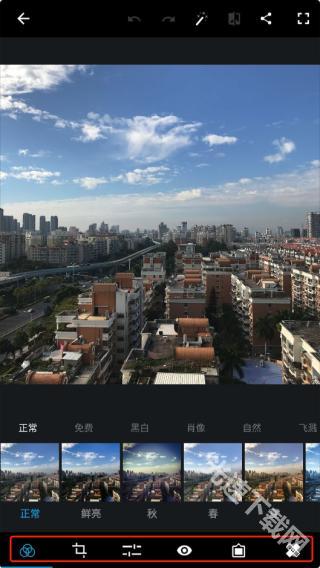 这里不采用自动增强功能,而是直接借助底部的工具栏来完成修图操作。