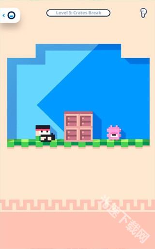比如这款射击动作小游戏,黑色卡通是玩家,粉色是敌人,用枪击杀ta即可通关