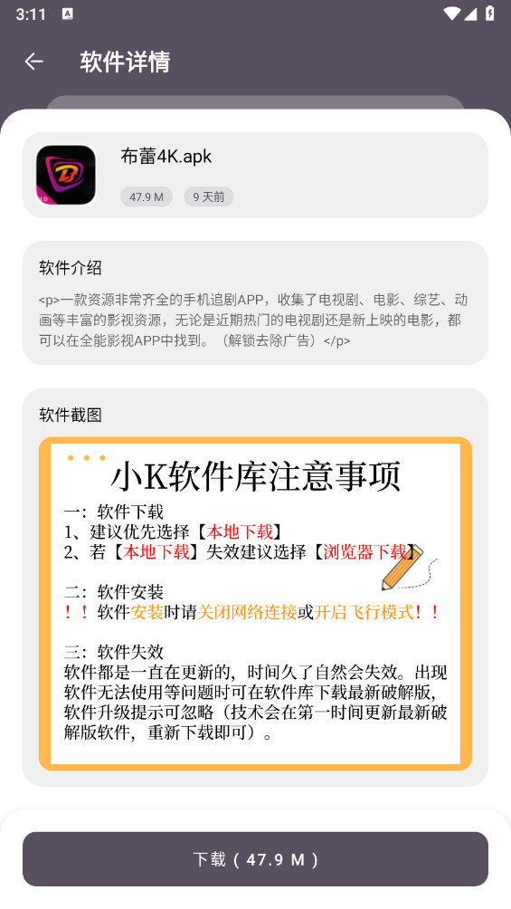 软件内若出现更新提示,请不要进行更新操作,小K软件库会尽快将最新修改后的软件上架供大家更新使用。