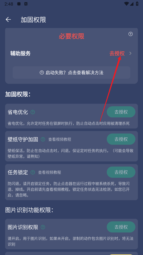 3、如图所示,点击"去授权",进入"无障碍"页面。