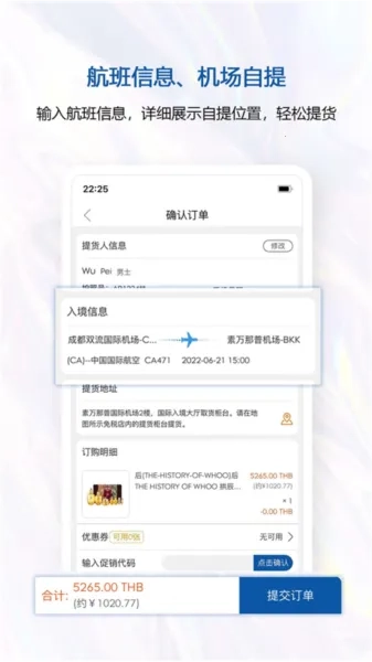 3. 选中商品一键下单,机场就能自提,省去繁琐购物流程。