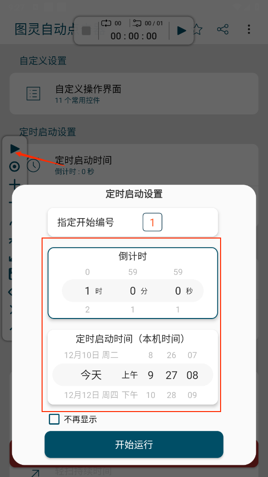 6、点击“开始”,进行定时启动设置,然后点击“开始运行”。
