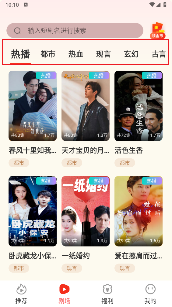 2、进入“剧场”板块,这里汇聚了包含多种题材的热门短剧资源。