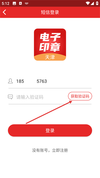 3、输入手机号码后,点击【获取验证码】按钮,即可获取短信验证码。