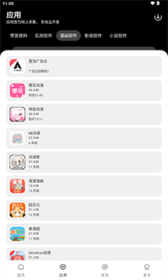 这款应用整合了海量资源库,涵盖实用软件、热门影视音乐、众多小说、漫画及各类学习材料等内容。