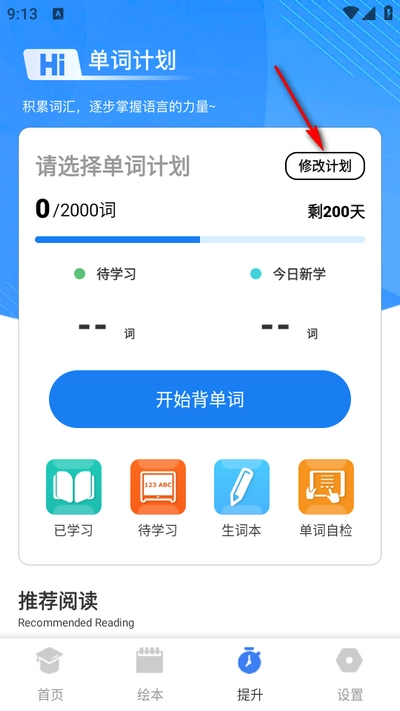 1、打开软件,进入"提升"板块,点击"修改计划"。
