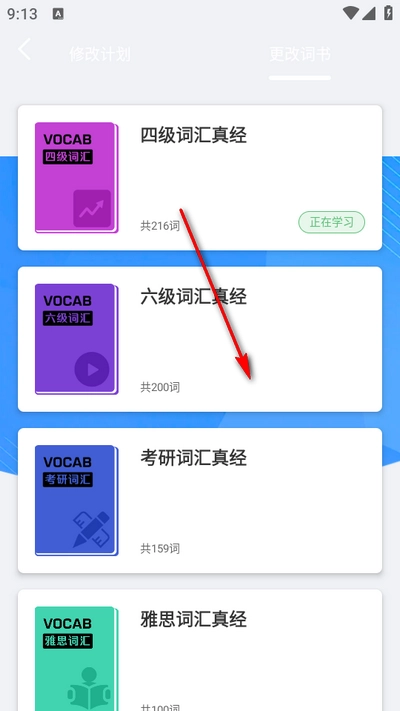 2、如图所示,选择相应的词书。