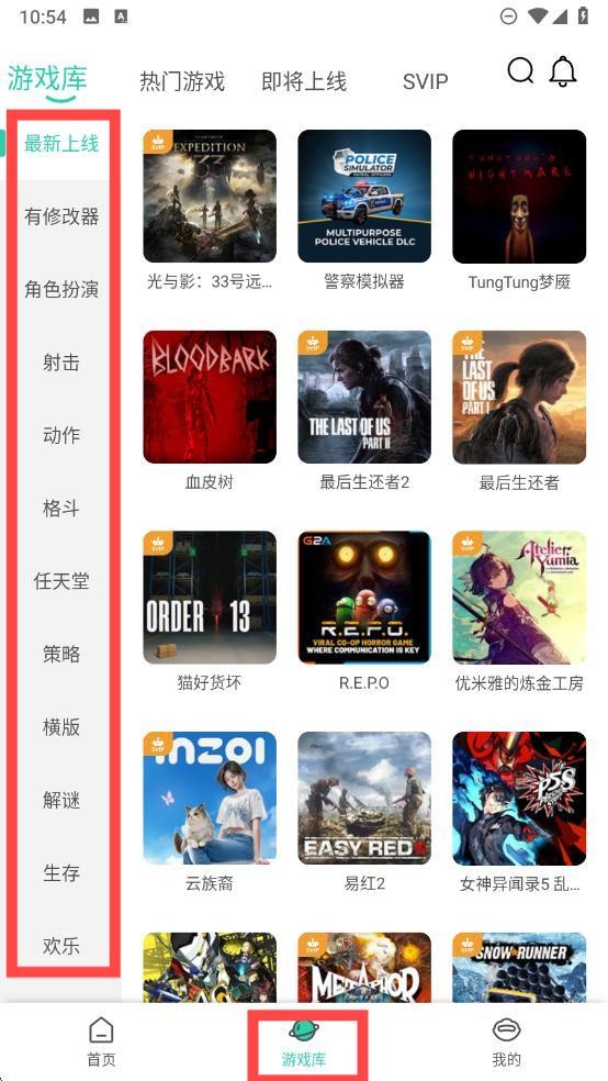 2、点击页面中间的游戏库按钮,这里有各类游戏按分类排列,方便你更好地挑选。