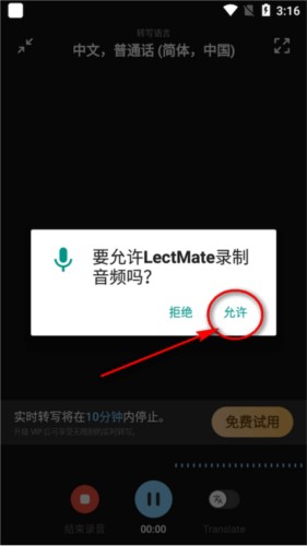 3. 使用高精同传功能需授权录音权限,弹出提示后选择“允许”,确保录制正常进行。