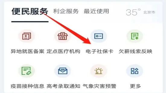 进入国务院客户端后,点击“电子社保卡”功能选项。