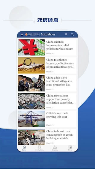 权威信息发布:国务院依托自身平台,可第一时间权威发布重大决策部署、政策文件以及领导活动等政务信息,保障公众获取到准确的资讯。
