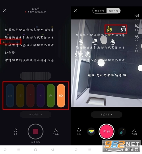 点击【开始】后,需依据歌词上方的颜色或手势提示,点击对应颜色的键盘按键,或是做出相应的手势动作。