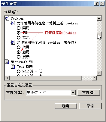 把Cookies选项的状态设置为“启用”,通常它的默认状态就是启用的。