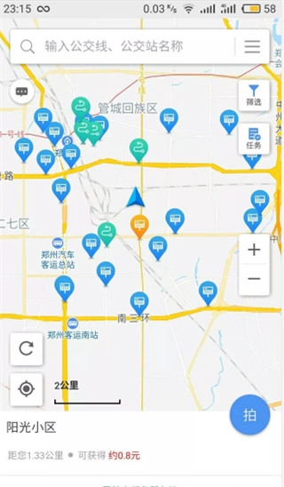 点击地图上的小标识,下方随即会显示公交站牌的地址以及拍摄奖励。