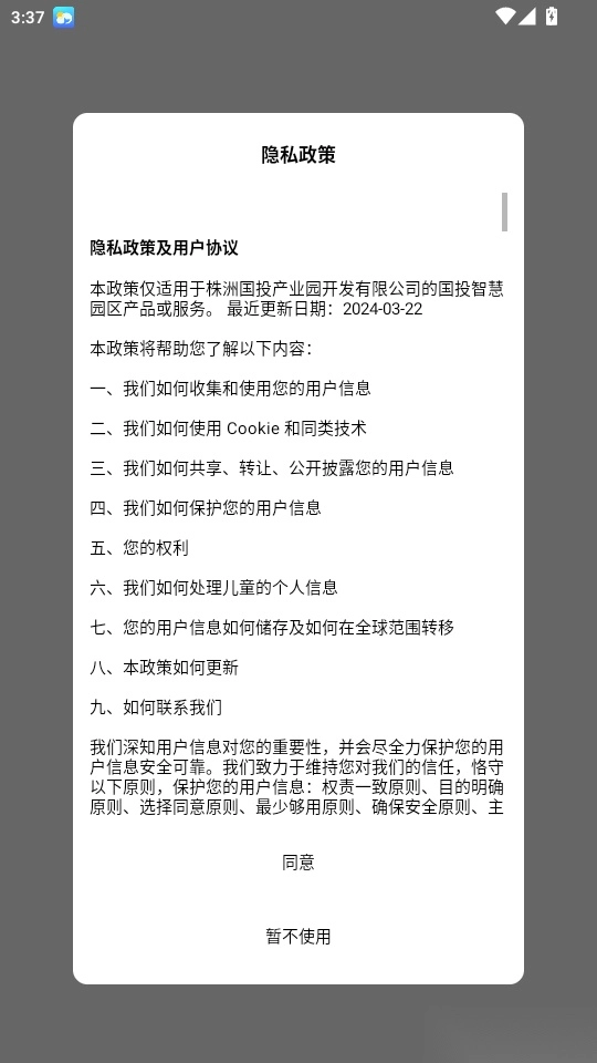 1.打开软件阅读“隐私政策”点击“同意”进入