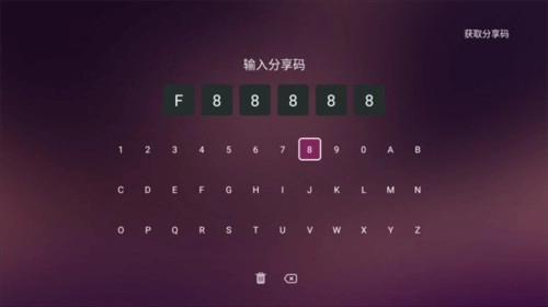 进入分享码界面后,输入6位分享码,例如输入F88888;